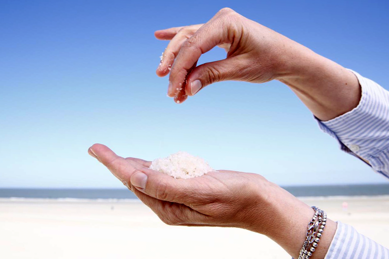 Meersalz ist aufgrund seiner reichhaltigen Zusammensetzung wunderbar für die Hautpflege geeignet. Es dringt tief in die Haut ein und setzt dort seine enthaltenen Mineralstoffe und Spurenelemente frei. Es bindet Feuchtigkeit und hat zudem eine desinfizierende und entzündungshemmende Wirkung. Eine handvoll Salz ins Badewasser geben und echtes Meeresfeeling genießen!